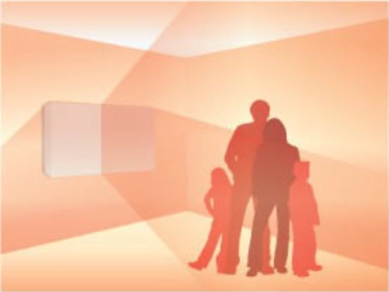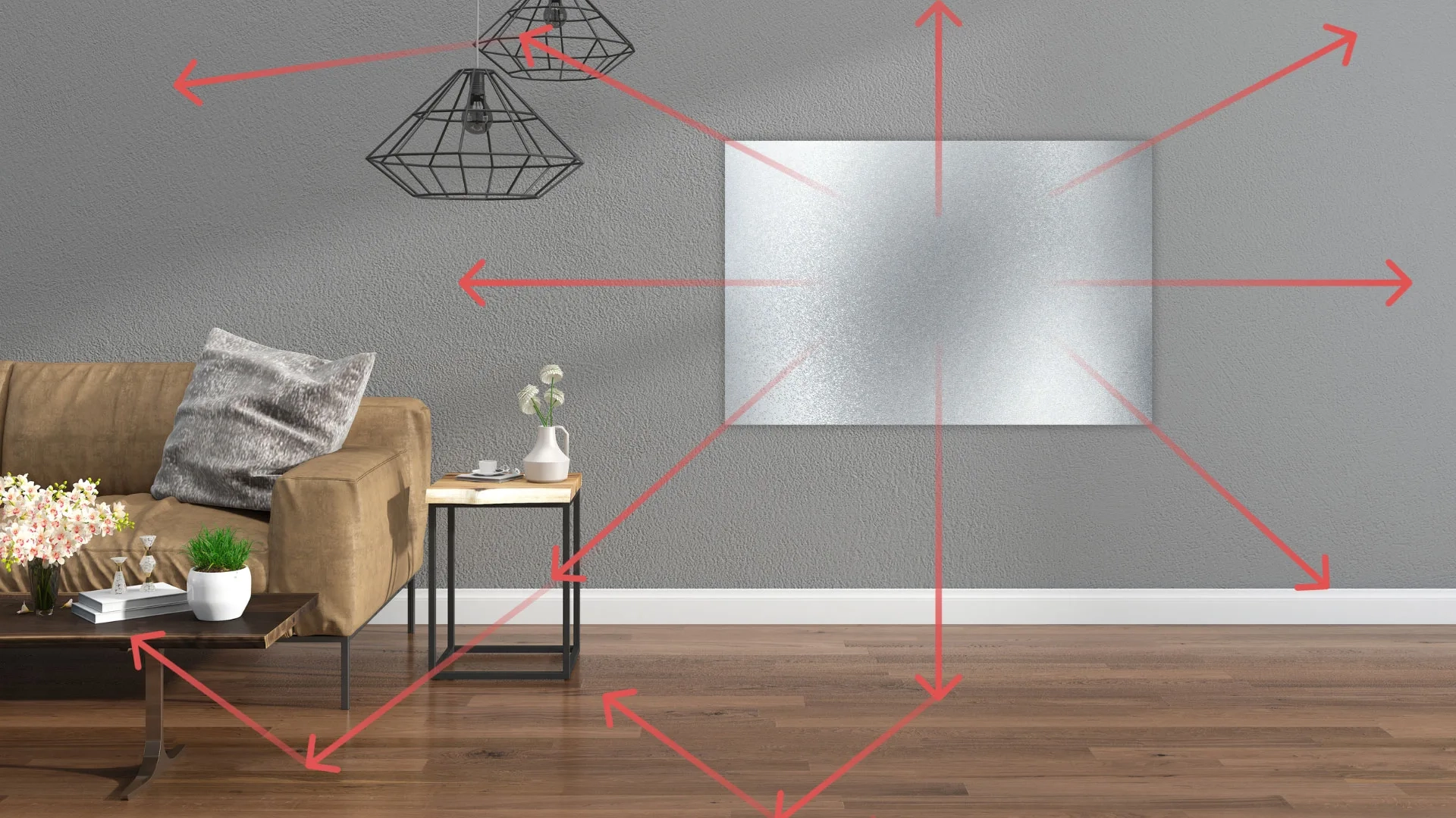 Nevidljivi infracrveni valovi izlaze iz panela i putuju kroz prostoriju.